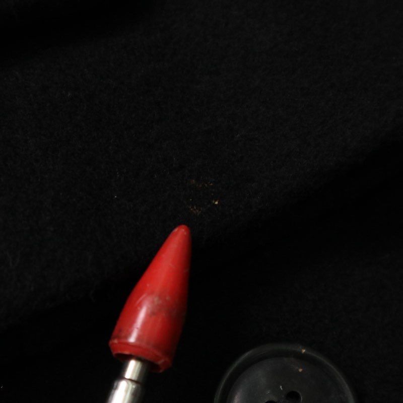 正面下部と左袖にごくわずかな薄い小さな汚れがございます。着用に問題はございません。