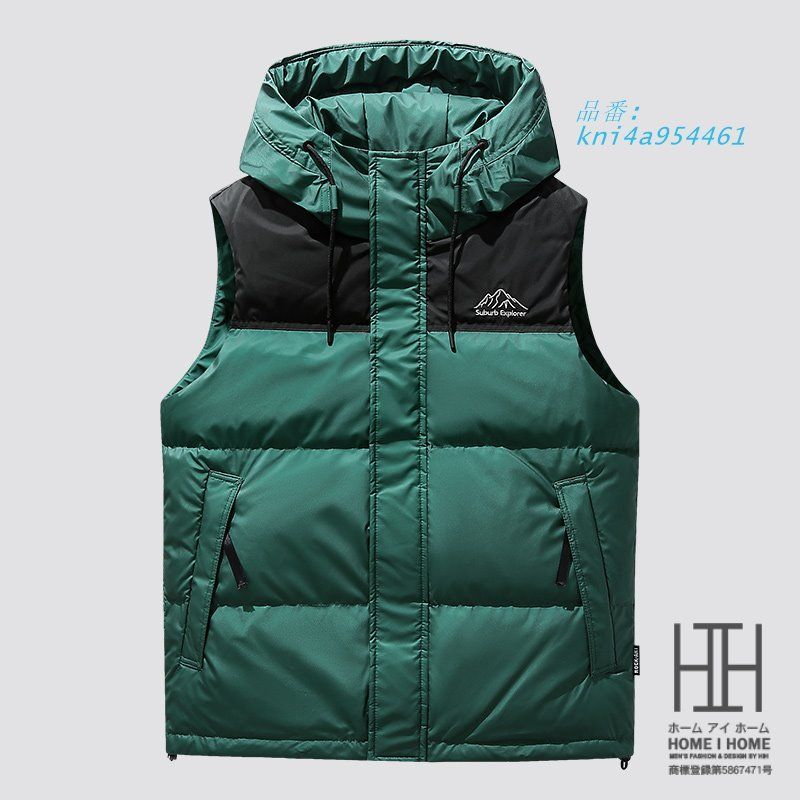 メンズ ダウンベスト 大きい 配色 フード付き 切り替え 保温 スタッフ アウトドア ダウンジャケット 防寒 刺繍入り ワンポイント おしゃれ 作業 防風 kni 4 a 954461