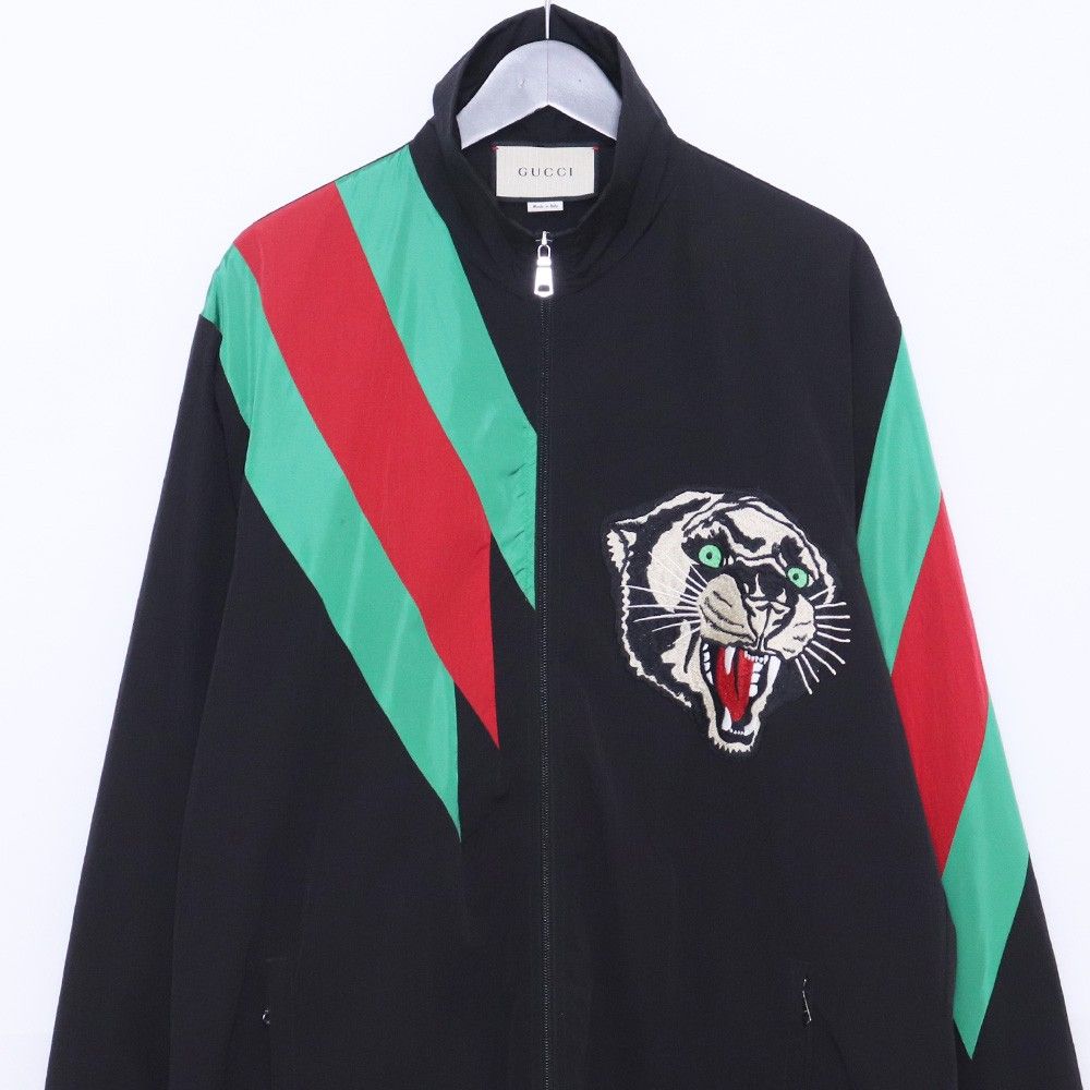 GUCCI ウェブインターシャ オーバーサイズ ナイロンジャケット Sサイズ ブラック 545556 XJAC4 グッチ シェリーラインタイガーロゴ刺繍 ブルゾン