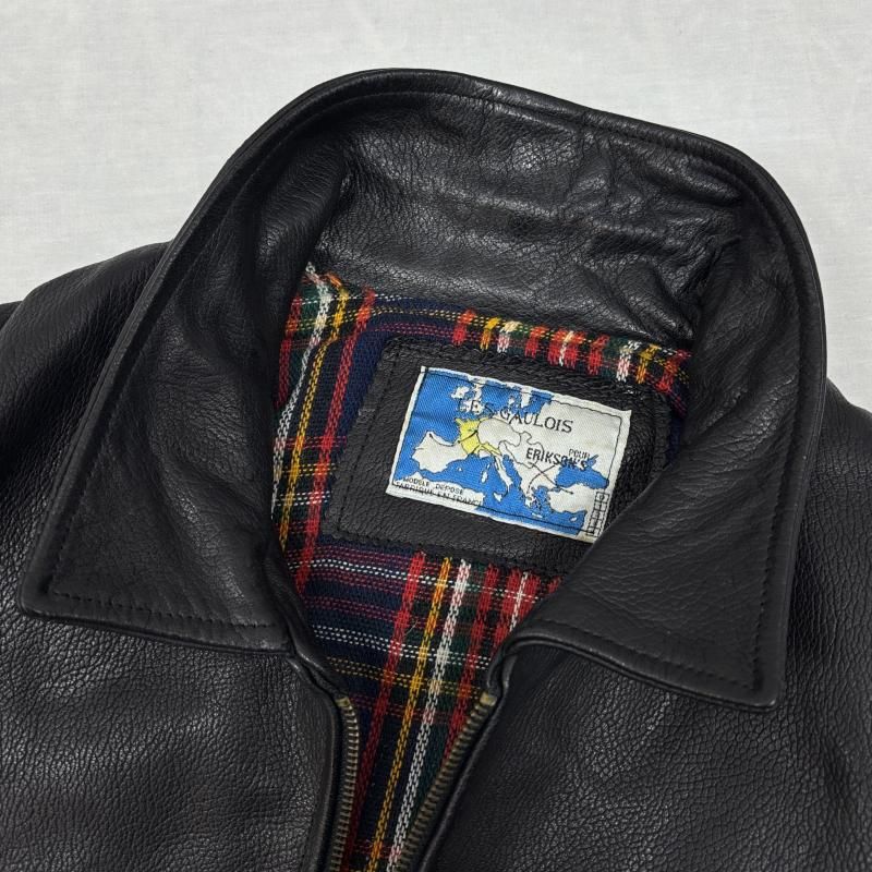 古着 LES GAULOIS ERIKSON S フランス製 レザー ジャケット ハーフコート 裏チェック シボ革 メンズ L ISItems