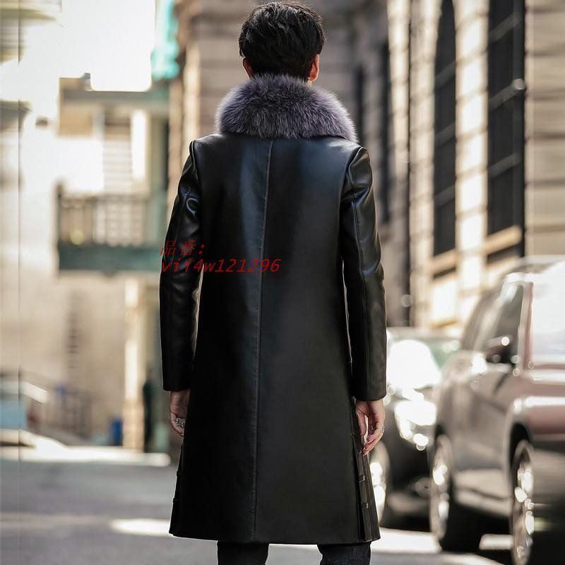 秋冬 ロング丈コート レザーコート 二つボタン ライダース PU フェイクファー付き メンズ 革 中綿 アウター vii 4 w 121296