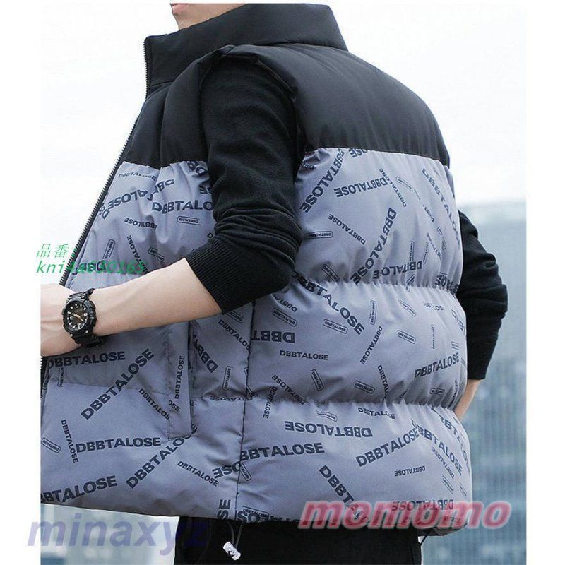 中綿ダウンベスト メンズ げ シンプル オシャレ 英文柄 トップス おしゃれ アウトドア アウター 防寒着 前開き ブルゾン kni 4 a 630165