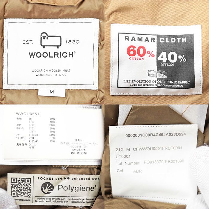 【シリーズ】WOOLRICH ウールリッチ ダウンジャケット ボウブリッジ ロゴ 60/40クロス フェイクファーフード取外可 コート メンズ M カーキ