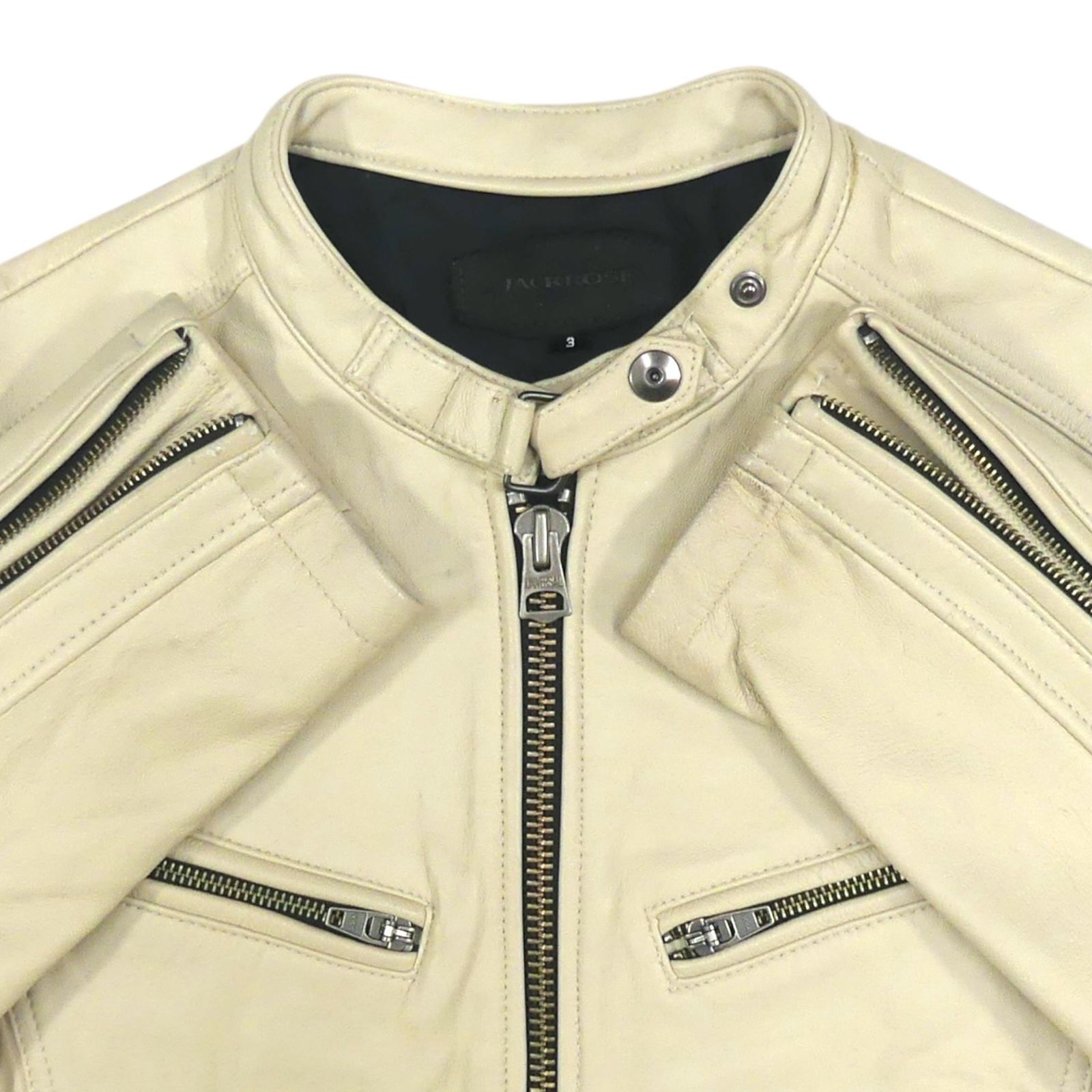 ジャックローズ ライダースジャケット L 本革 シングル 羊革 メンズ 3 レザージャケット 白 アイボリー ベージュ 立襟 バイク レザーライダースジャケット_サイズL一覧 SEULB屋着古 X 8033
