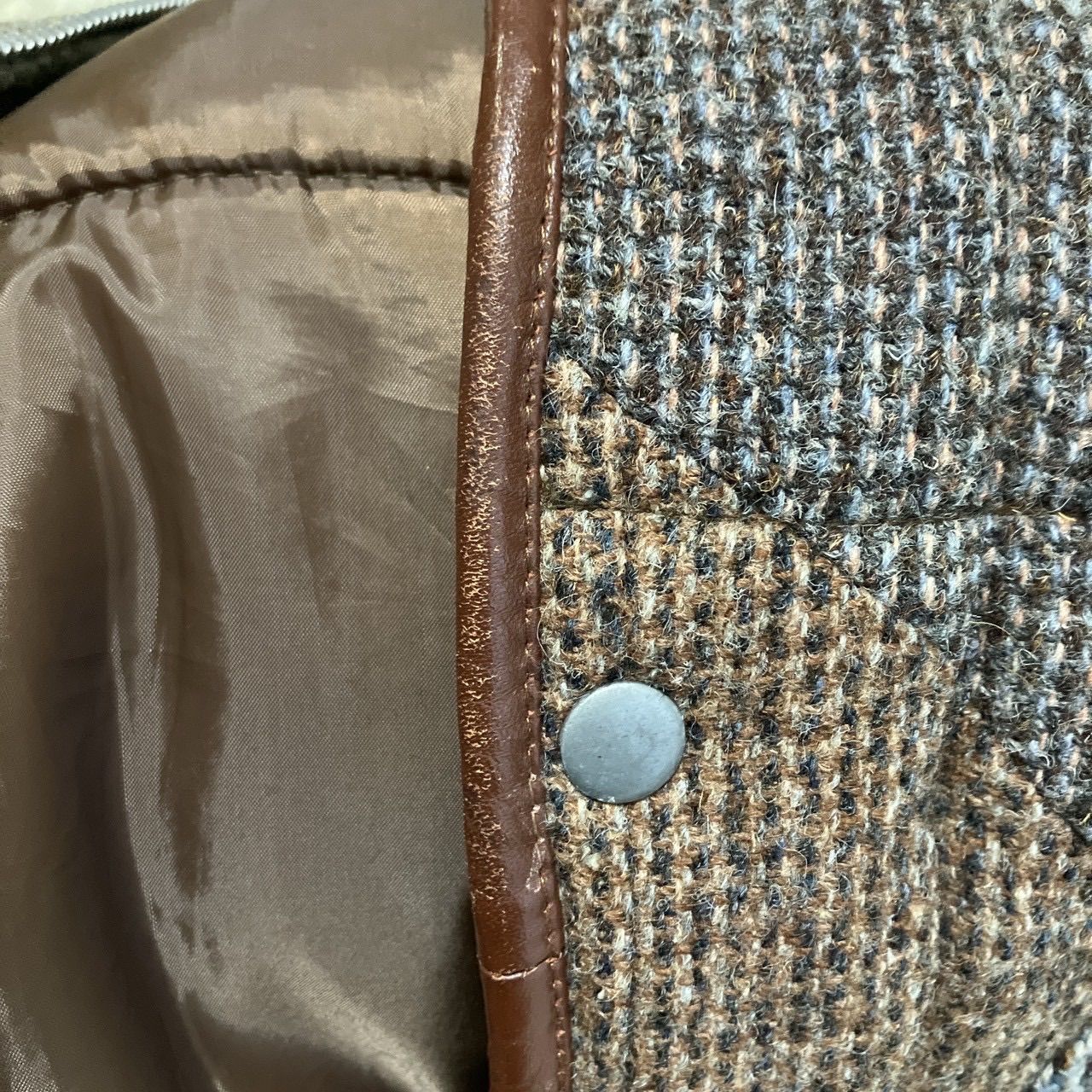 Harris Tweed ハリスツイード ウール パッチワーク ダウンベスト ヘリンボーン