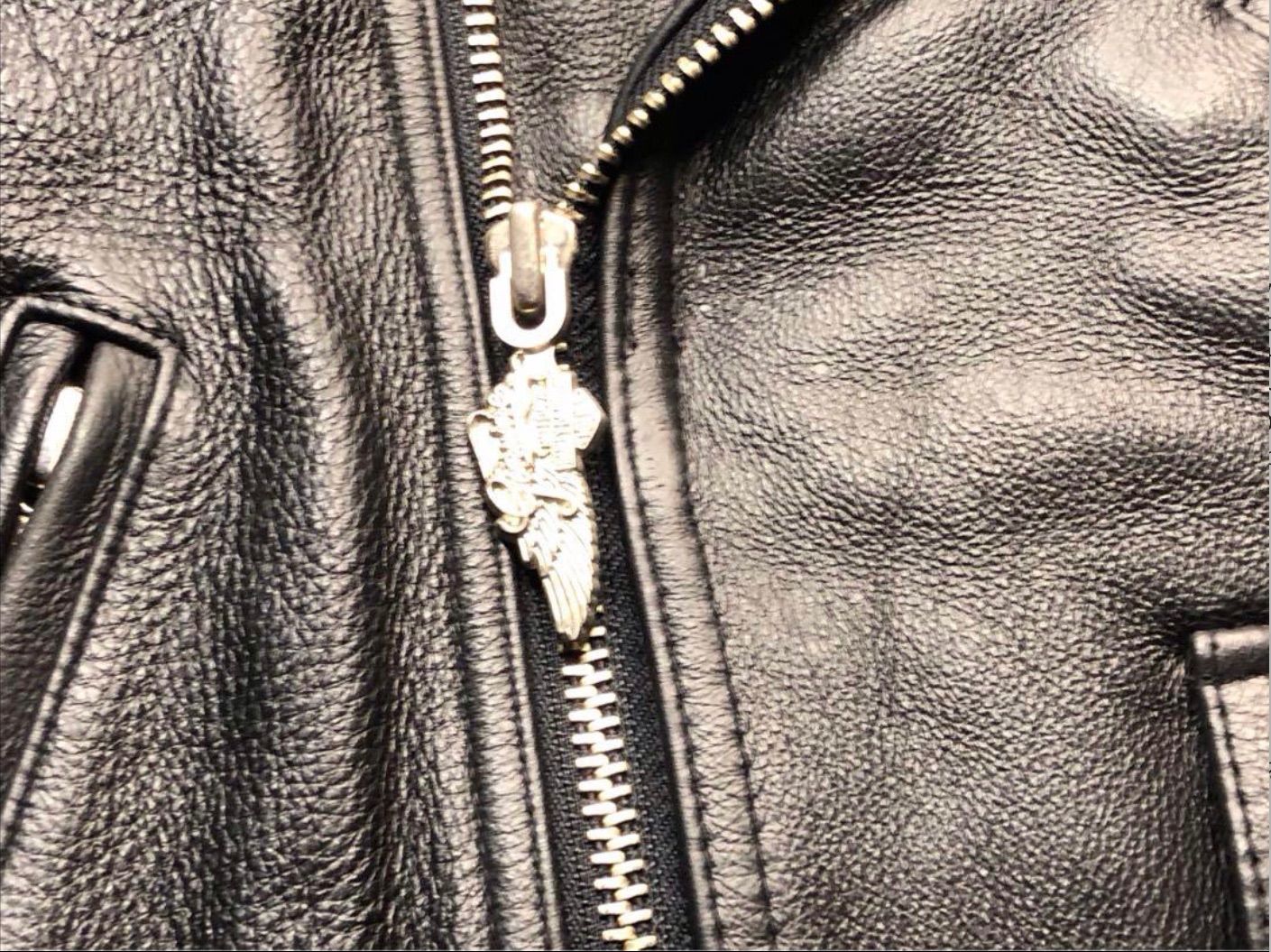 現在はかなりのレアなモデルとなった、現行型モデルにこのような、ヴィンテージもののHarley-Davidsonのレザージャケットは、ヴィンテージ特有の大きなダブルの襟とマットなシルバーZIPとバックデザインも年代を超えてクールなファッション・アイテムとしても世界中の影響力のある有名人・モデル・俳優・アーティストなどの着用愛用で揺るがぬブランド力を誇示するハーレーダビッドソン・年数を経過しても価値の下がらない、上がるというHarley-Davidsonは、日本でもモデル・アーティスト・俳優・有名人が愛用のブランドとしての地位を獲得しています!★街歩き、ライデイング問わず愛用出来る★現在はかなりのレアなモデルとなったクールなHarley Davidsonライダース・ジャケット・本革製ライダース・ジャケット類は、バイクライダースギア、街歩きにもファッション性の高い、クールなヴィンテージモデルは、いつの時代にも人気の高いアイテムです!Harley Davidson※世界中にハーレーファッション愛好家やコレクターがいます、芸能界やモデルにもファンが多く人気の入手困難アイテムです! ※ハーレーダビットソン製ジャケットは、たとえ30万円で購入しても、一生物です!食べ物は食べて終わりですが、一度買ったら一生使えるレザージャケットは、とても安くて身を守り、ファッションアイテムとしてずっと使える疲労知らずのアイテムです!※ハーレーダビットソン・ファッション・アイテムは、日本・本国・米国・欧米全土・世界中でコレクターや愛好家などのファンが多く、特にレアなモデルはニューヨーク、カリフォルニア、ロンドン、パリ、ベルリン、ミラノ、原宿、秋葉原、とヴィンテージ品や新品専門店などで高額なプライスが付いています、新品購入時の数倍のアイテムもあります、日本内外にも有名芸能人やモデル、インフルエンサーなどにも愛好家が多い事で知られています、Harley Davidsonブランド・ファッション・グッズ・アイテムは今や人気度の高いブランドとして流行しています、、またレアモデルは現行の新しいタイプのモデルには無い、ワイルド・ハレー乗り、もはやライデイングギアだけでは無く、ファッション、街歩きアウターとして、エンドレスな流行を繰り返す人気のアイテムです!※