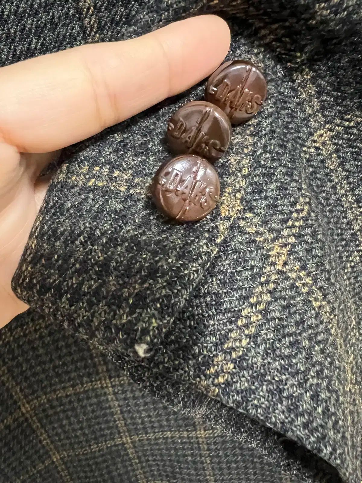 Dax メンズカーキブラウンチェックウールカシミヤジャケット