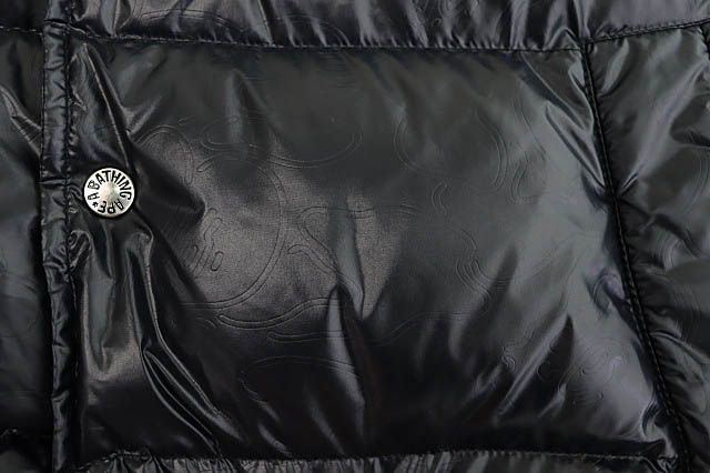【商品名】アベイシングエイプ A BATHING APE LINE CAMO DEBOSSED NYLON DOWN VEST ライン カモ デボス 総柄 ロゴ ナイロン ダウン ベスト 001DNK801306M L 黒ブラック ブランド新品ベクトル 新品251103