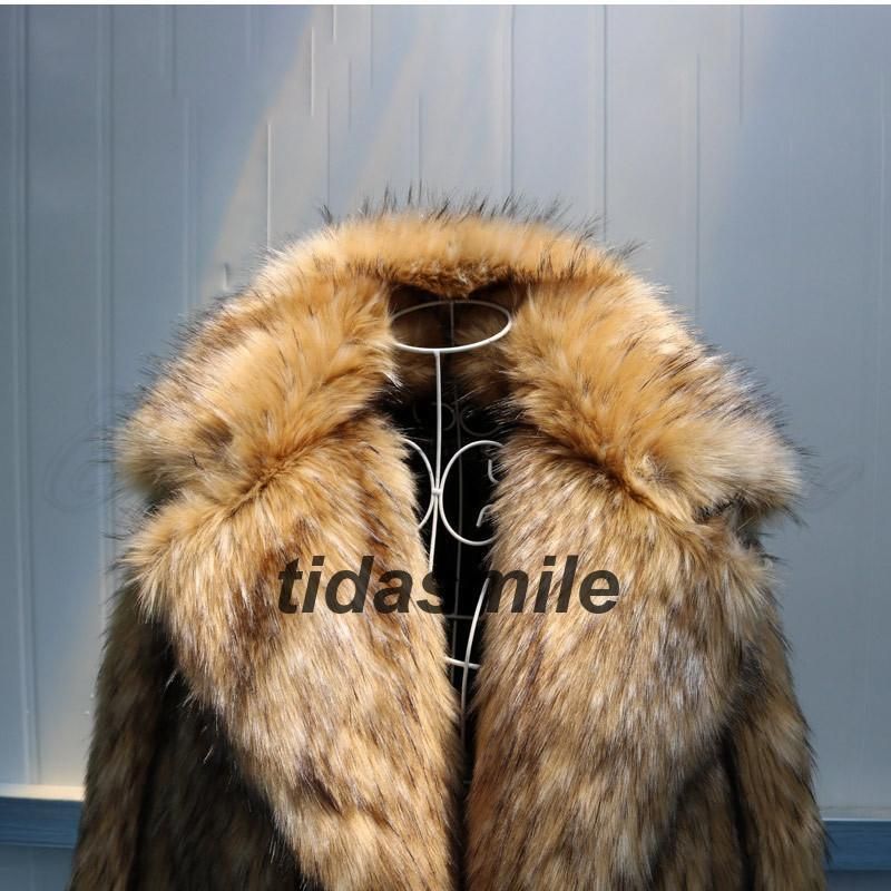 毛皮コート メンズ ファーコート ロング丈 ボリューム襟 ポケット付き トップス カジュアル 厚手 大きいサイズ 防寒 秋冬 21年秋 おしゃれ
