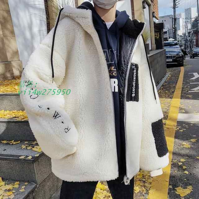 ムートンコート メンズ ボアジャケット ボアコート 暖い フード付き 男 カジュアルコート 綿 裏ボア ゆったり 裏起毛 大きいサイズ 無地 vii 4 w 275950