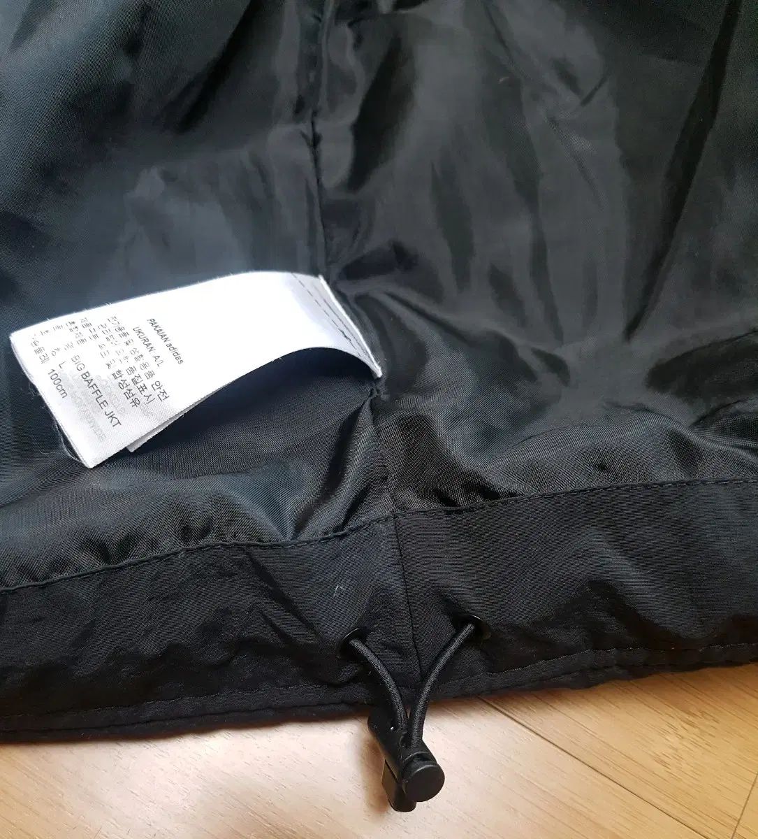 帽子は一体型で、裾シャーリングがあり調節可能です。