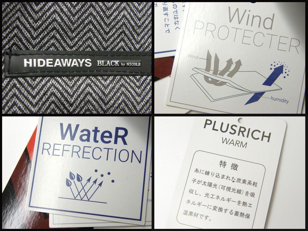 HIDEAWAYS BLACK by NICOLE × PLUSRICH WARM ハイダウェイブラックバイニコル 撥水 防風 透湿 蓄熱保温 ダウンジャケット 取り外し フード付き 大きいサイズ | 秋冬 雨の日 雪の日