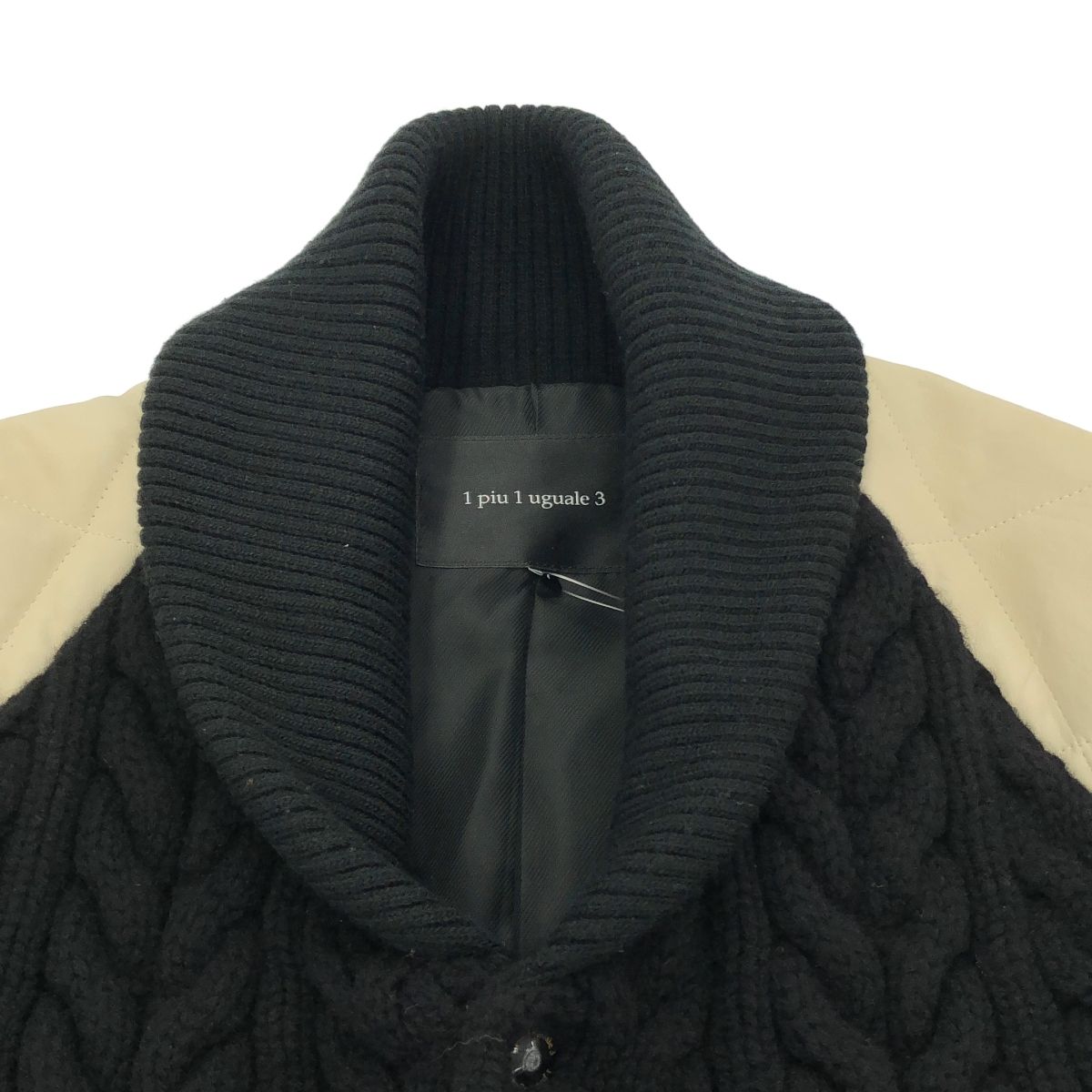 1 piu uguale 3 ウノピゥウノウグァーレトレ 13 AW キルティングレザーニットスタジアムジャケット MRB 025 WOL 028 ホワイト ブラック 4