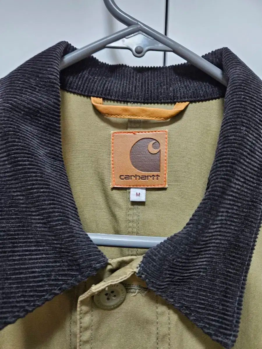 Carhartt デボン ジャケット カーキカラーです。襟部分はコーデュロイ素材になっています。ワークジャケットの特性上、多少の使用感はございます。