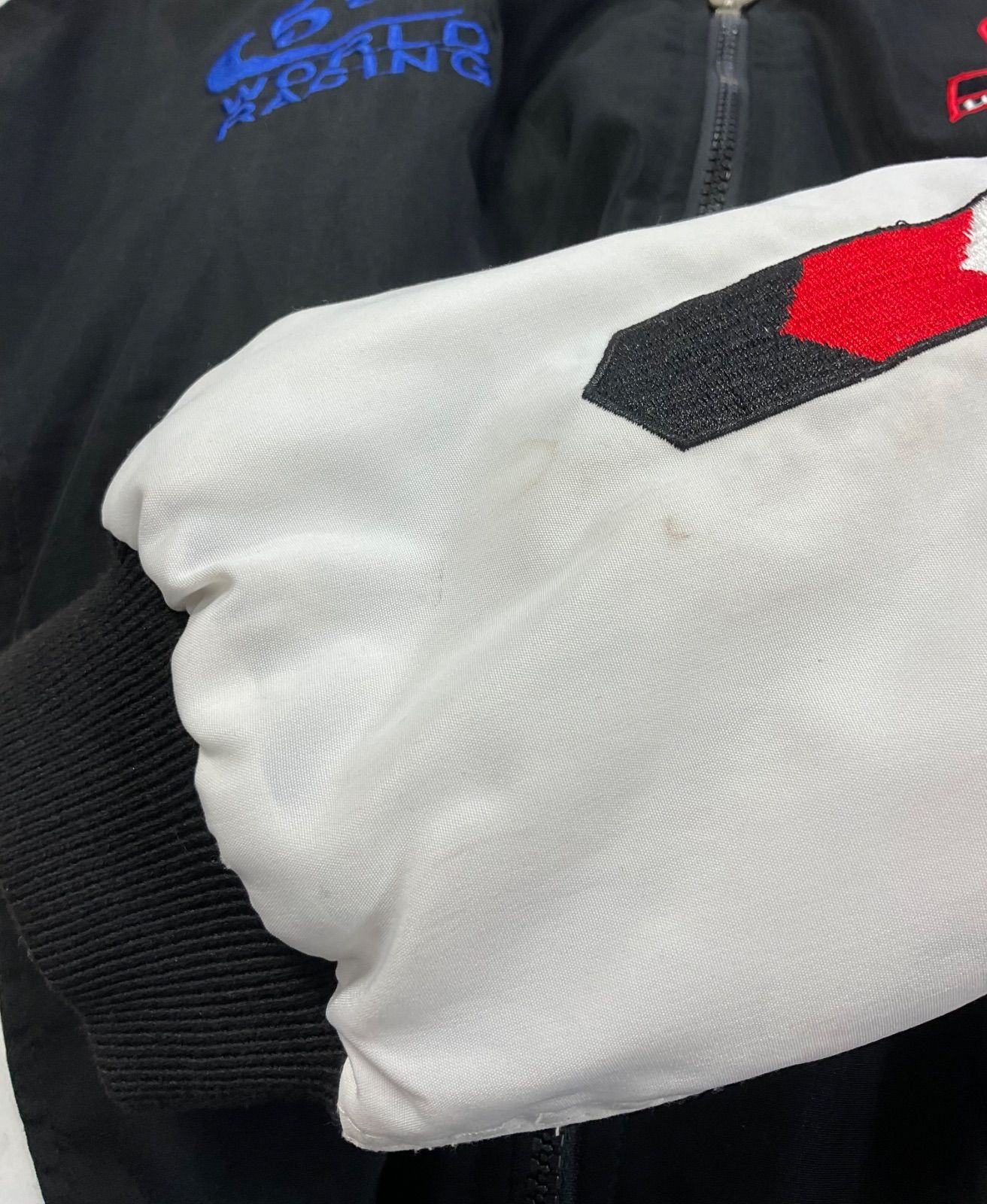 HONDA ホンダ レーシングジャケット ラッキーストライク 刺繍 メンズL ブラック×ホワイト 古着 10464