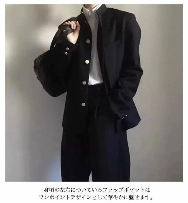 ズボン スラックス 学生服 男子 詰襟 学ラン ブラック 上着 ラウンド襟 上下セット メンズ ジュニア ボーイズ 制服 ジャケット 丸洗い ウエストゴム 高校生 中学生 通学 2点セット 入 jiaguan 174