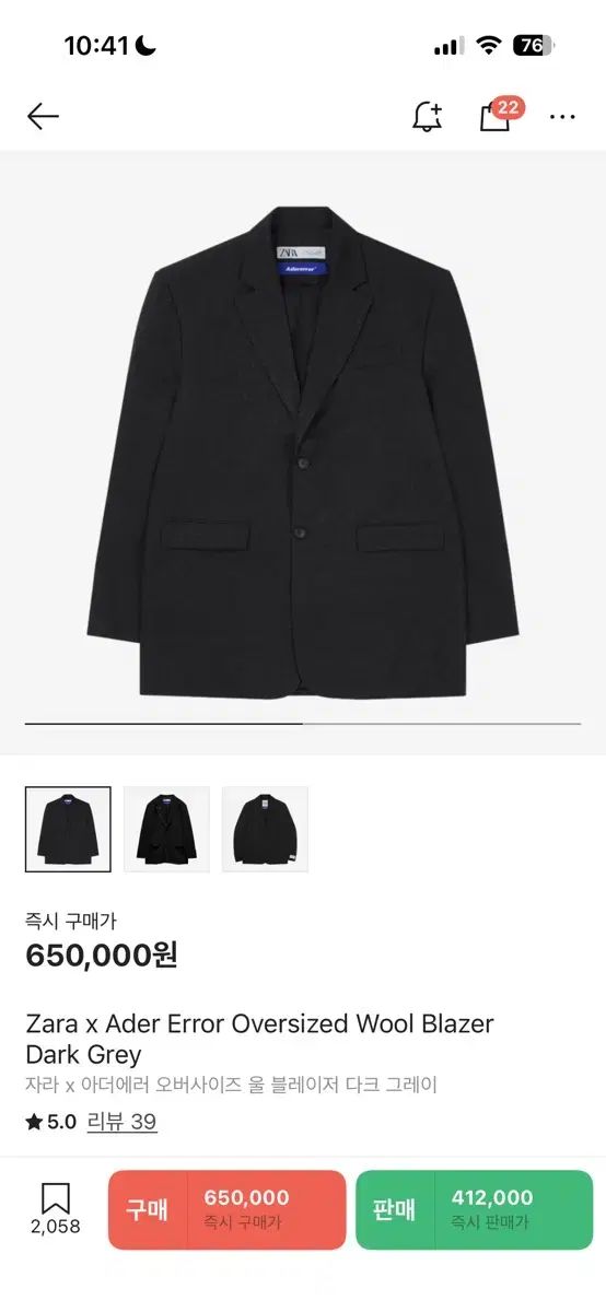 ZARAとADER ERRORのコラボでリリースされたオーバーサイズ ウール ブレーザー DARK GRAYです。