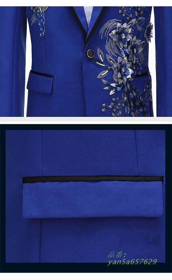 タキシード きらきら メンズ スーツ ジャケット 長ズボン 上下セット 2点セットアップ 演出服 ステージ衣装 光沢のあるジャケット スパンコール 衣装 黒白 2色選べるズボン 白 紺 紫 赤 青 スパンコール クリスマス仮装 ハロウィン衣装 X1X0