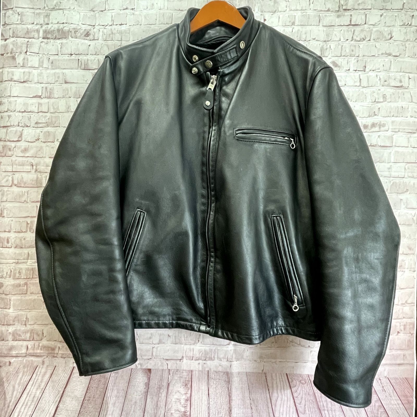 Schott ショット Lot 141 ボアライナー付き レザー シングル ライダースジャケット ブラック 黒 46