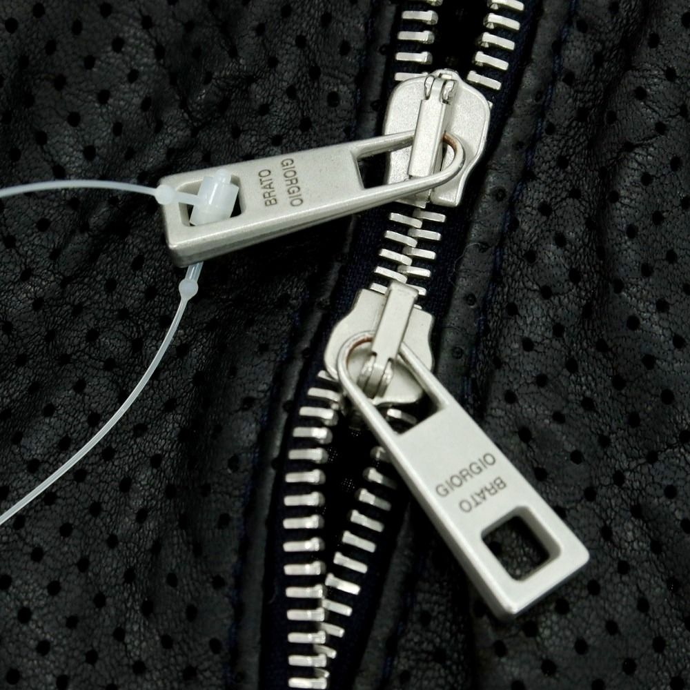 ・ オールシーズン ・ パンチング ラムレザー ・ イタリア製 ・ ダブルファスナー開閉 ・ 前身ポケット×2 ・ 総裏地