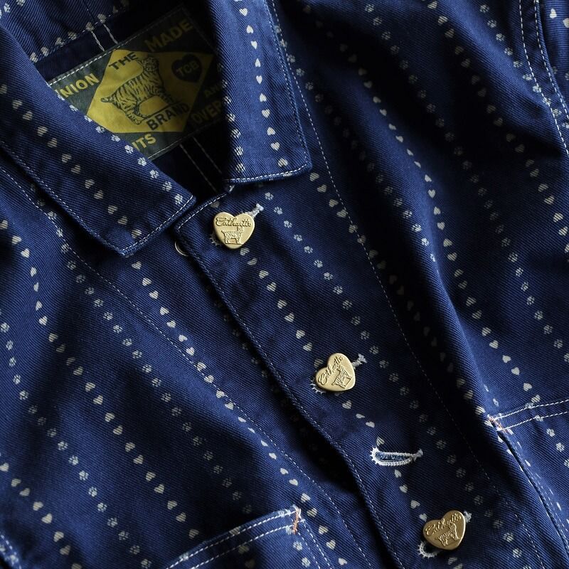 Vintage Carharttで存在したハートストライプとTCBらしさである?Cats Pawをミックスし、出来上がった服として観てもクラシックでカッコいい。