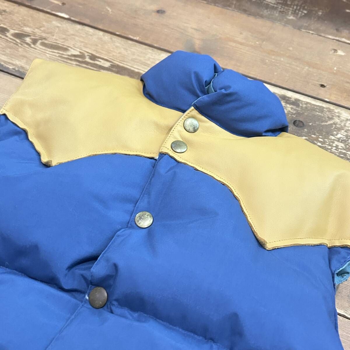 WAREHOUSE / ウェアハウス ダウンベスト DOWN VEST グースダウン レザー切り替え ベスト ナイロン ボタンダウン USED
