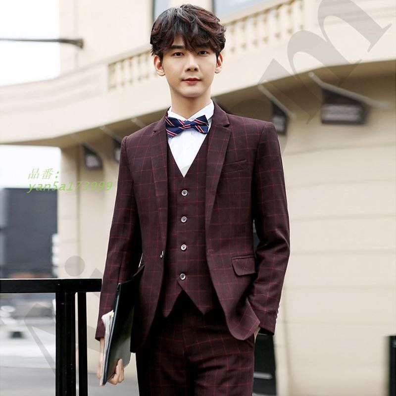 スリーピース スーツ メンズ ビジネススーツ セットアップ 結婚式 チェック ベスト 3点セット スーツセットアップ 通勤 カジュアルスーツ 細身 yan 5 a 173999