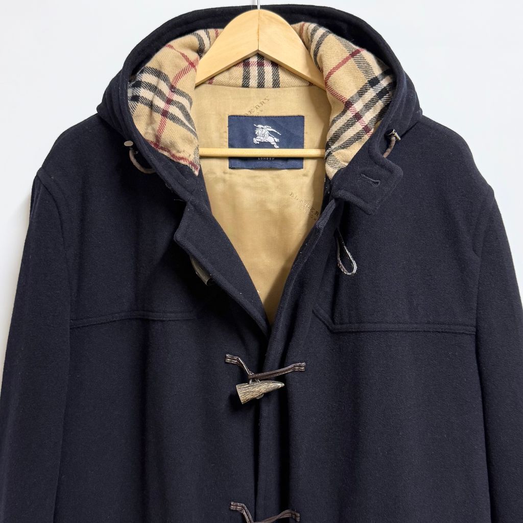LONDON バーバリーロンドン ダッフルコート ウールライニング 裏地チェック柄 トグルボタン 紺 ネイビー No.H 923
