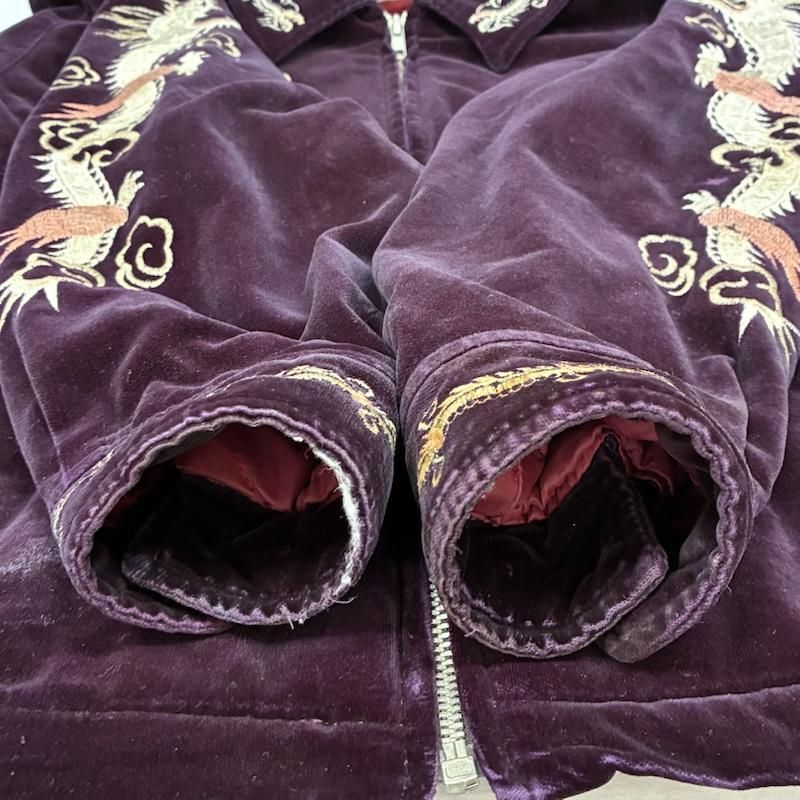 古着 ジャケット 上着 ジャンパー ブルゾン BOURBON HOUSE 00 s ベロア 別珍 スカジャン ベトジャン 和柄 龍 刺繍