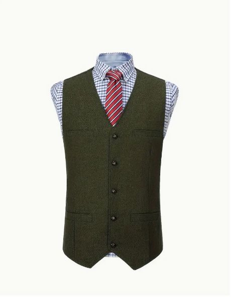 ベスト メンズ ヴィンテージ風 ヘリンボーン ウールブレンド 結婚式 ゴルフ アウトドア スーツ 仕事 会社 ビジネス かっこいい スマート ウール混紡 スーツ用 新郎 シングルブレスト おしゃれ 色の 豊富 アーミーグリーン