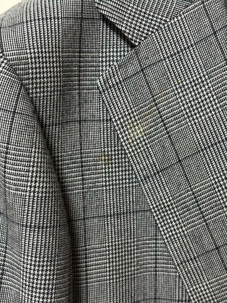 普段 100 程度 着用 すると サイズ よく 合います。未使用 新品 購入 後 二度だけ 着用し、状態は とても 良い です。右 ラペル 部分に 簡単に 取り除ける 微細な 汚れ が あり、ドライクリーニング すれば 新品 服 のように 着用 できると 思います。