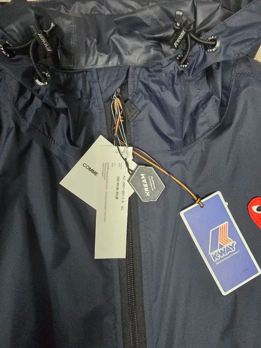 COMME des GARCONS(コム・デ・ギャルソン)とK-WAY(ケーウェイ)コラボのウィンドブレーカー新品です。タグ付きXLサイズ、ネイビーカラーです。バストにあるCOMME des GARCONS(コム・デ・ギャルソン)のハートロゴがPOINT(ポイント)です。特にお問い合わせがなければ、そのまま安全決済をお願いします!