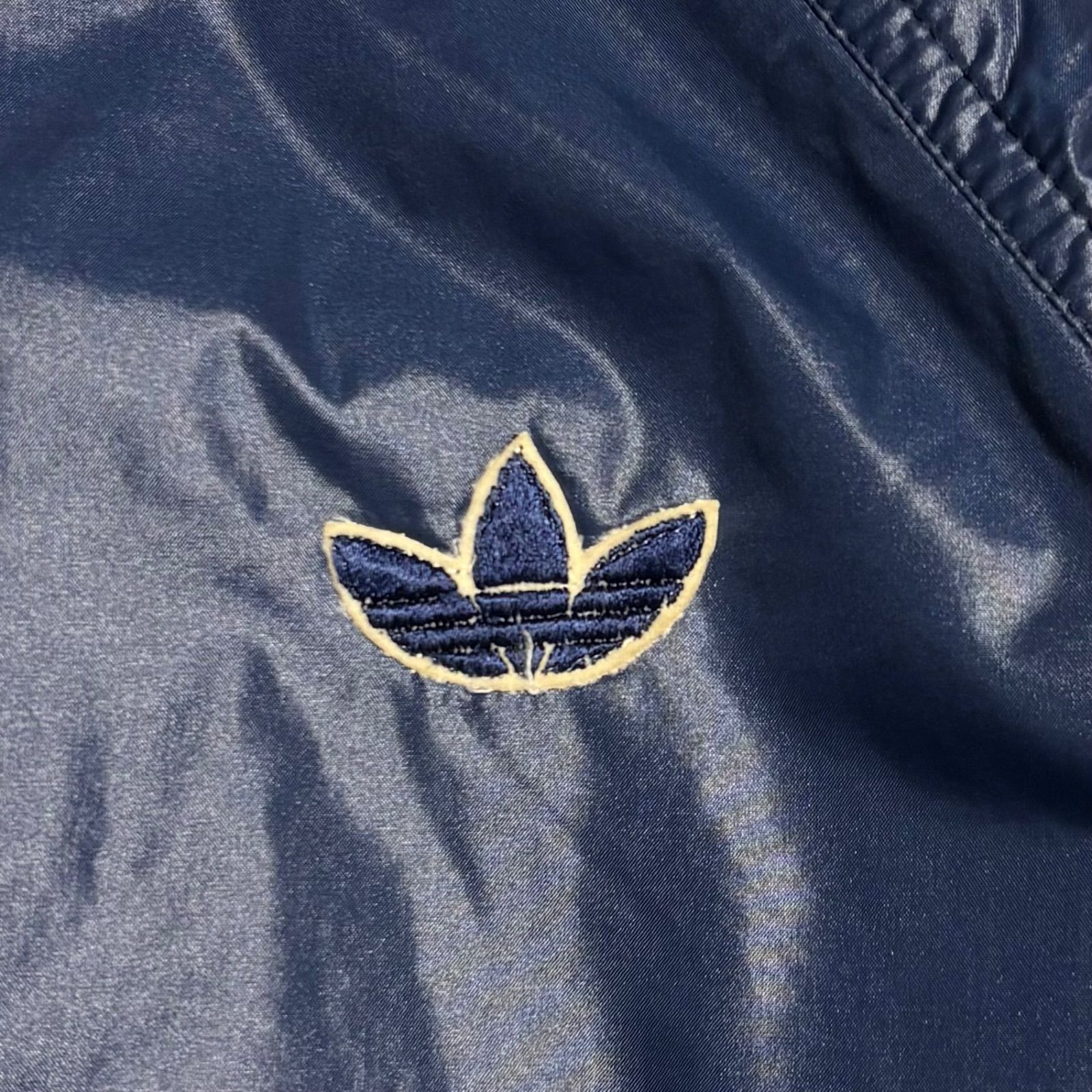 adidas アディダス NylonJacket ナイロンジャケット Padded 中綿 Hoodie パーカー デサント 70 s EmbroideredLogo 刺繍ロゴ Nylon ナイロン Polyester ポリエステル Navy ネイビー 紺 L