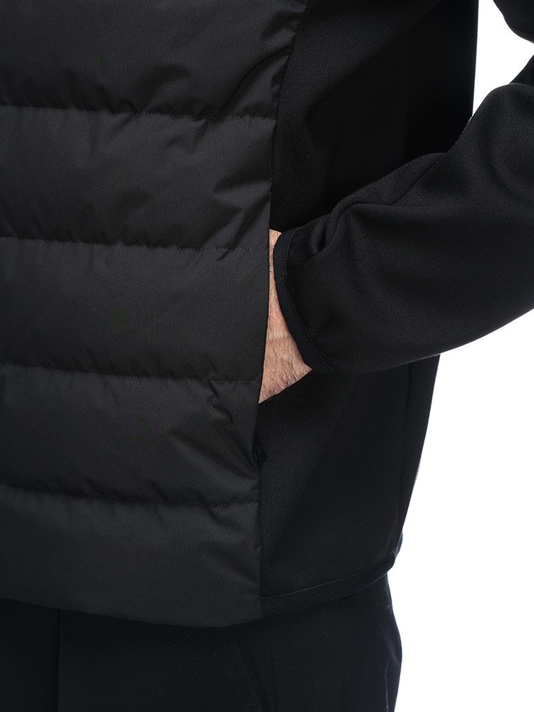 素材:[表地]レーヨン63% ナイロン33% エラスタン4% [外側]ポリエステル100% [内側]ポリエステル92% ポリウレタン8% [裏地]ナイロン100% [中綿]ダウン80% フェザー20%