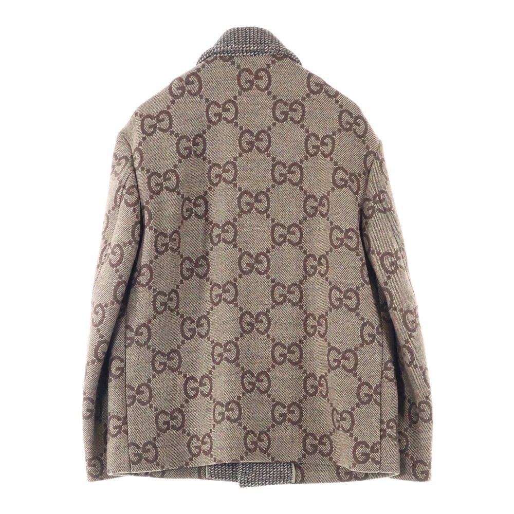 GUCCI グッチ マキシGG ジャカード 総柄 ウール ステン ジャケット ショート コート ブラウン 770760