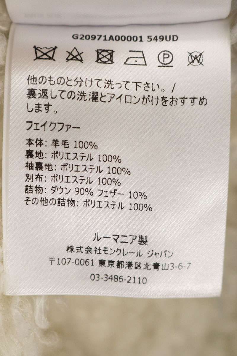 【品質表示】(表地),ウール,(裏地),ポリエステル,(別布),ポリエステル,(中綿1),ダウン90%,フェザー10%,(中綿2),ポリエステル