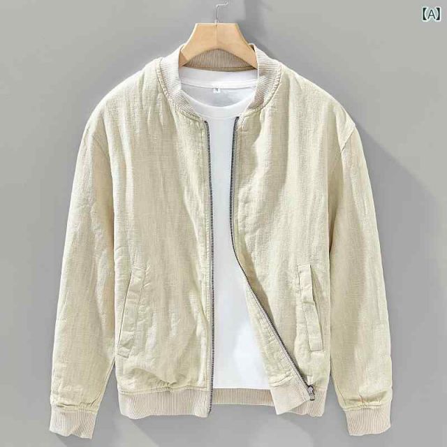 L メンズ ファッション 服 男性用 オシャレ シンプル 大人 かっこいい 大きいサイズ ストリート 紳士服 夏 ラウンド スタンド レトロ 綿 リネン カジュアル ジャケット トップス 薄手 コート ラミー