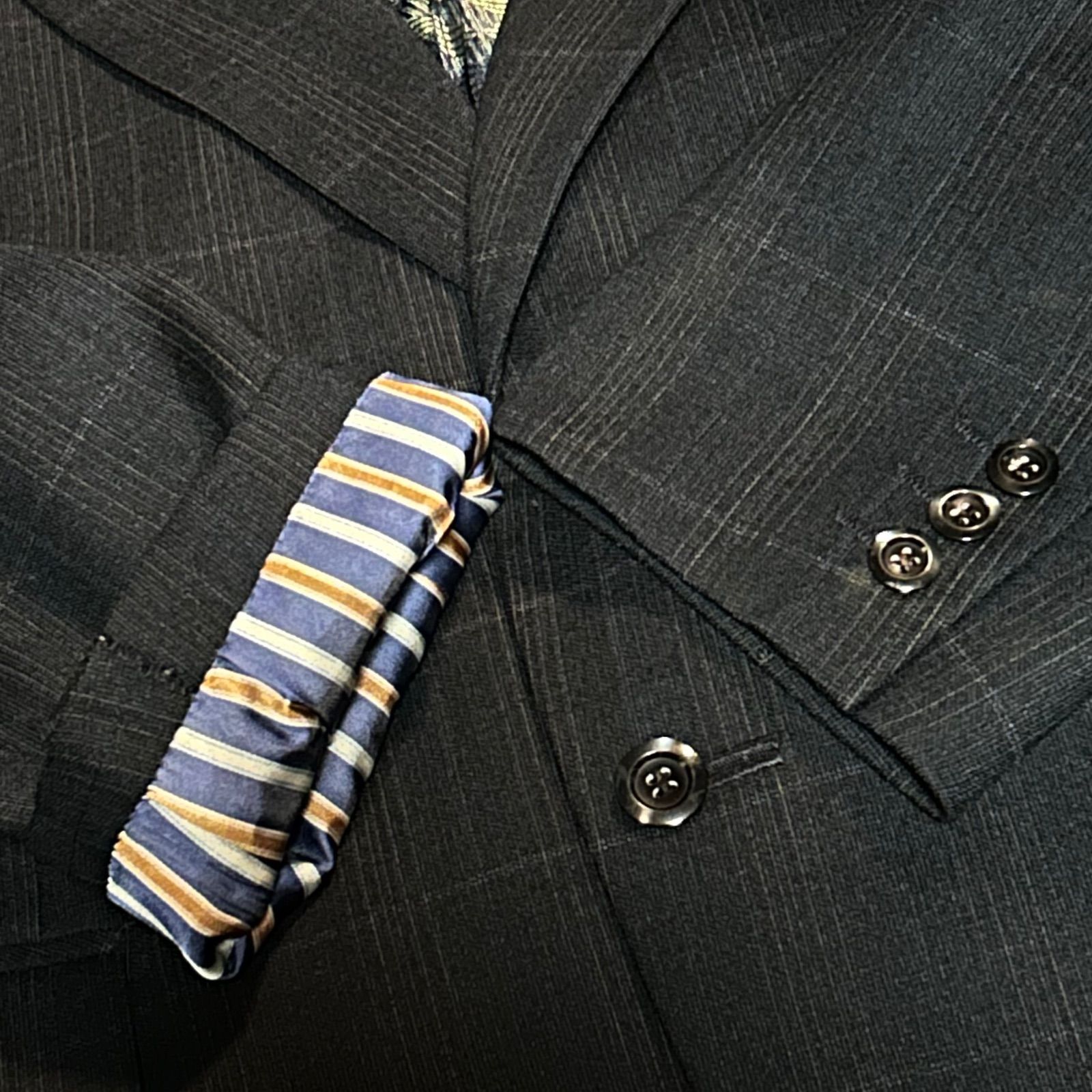 黒に近い濃紺に細い線のチェック柄。