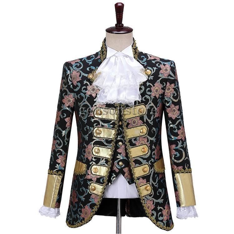 ヨーロッパ 中世 宮廷復古風スーツ メンズ 刺繍花柄 3点セット ジャケット ベスト パンツ ステージ演出服 コスプレ衣装 舞台劇 オペラ 仮装 コスチューム