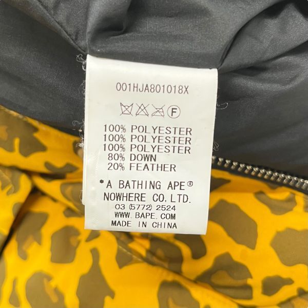 アベイシングエイプ A BATHING APE ダウンジャケット レオパード柄 黄色 黒 XXL メンズ S 5 X 083