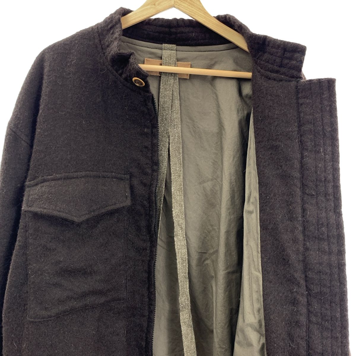 DA S ダズ アルパカ ミリタリー ジップアップジャケット 3 ブラウン メンズ