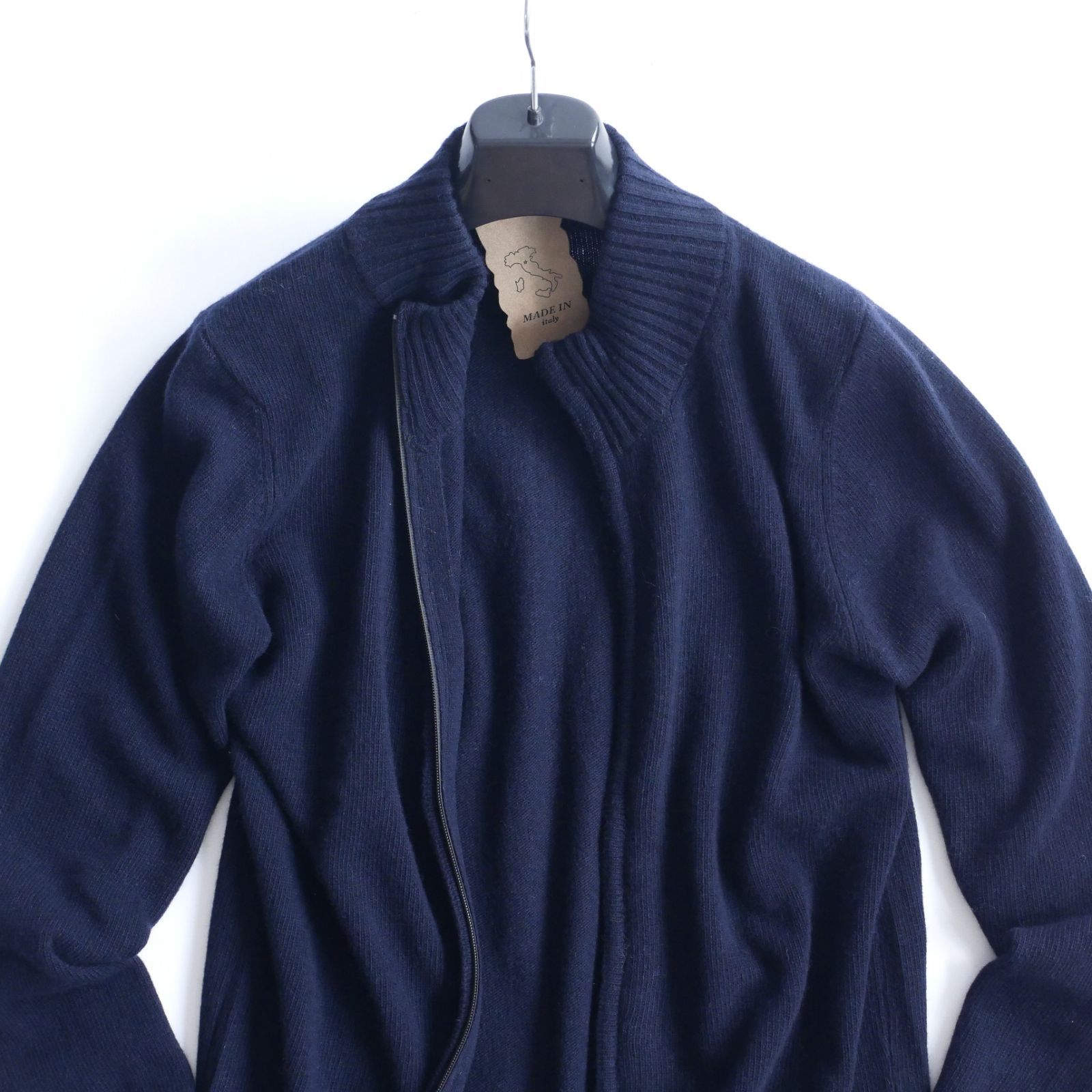 ●イタリアのスタイリッシュな感性と高い縫製技術が融合した「MM メイドインイタリー」より、ブランド用に製作された特別なカシミヤニットブルゾンでございます。「MM メイドインイタリー」は、自社ブランドのみならず他のブランドへも製品提供を行なっており、信頼の証でございます。本品は、上質なエクストラファインメリノウールにカシミヤをブレンドし、柔らかく包み込まれるような極上の着心地を実現しております。