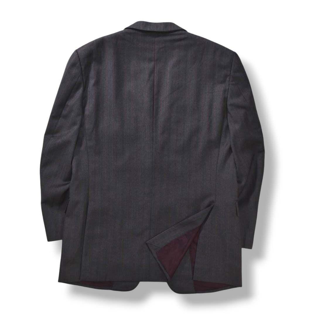 スイス製 エルメネジルド ゼニア トロフェオ Ermenegildo Zegna TROFEO ROMA MODEL 2 B シングル スーツ セットアップ 上下 48 C ヘリンボーン ストライプ グレー x ワインレッド メンズ