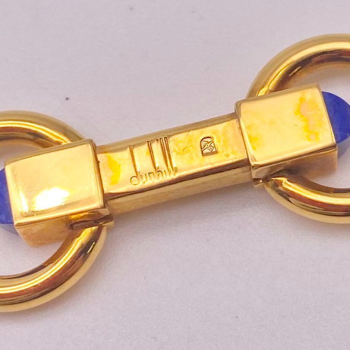 Dunhill ダンヒル ロゴ ロングシェイプ ブルー ストーン ゴールド カフス eY 0811 A