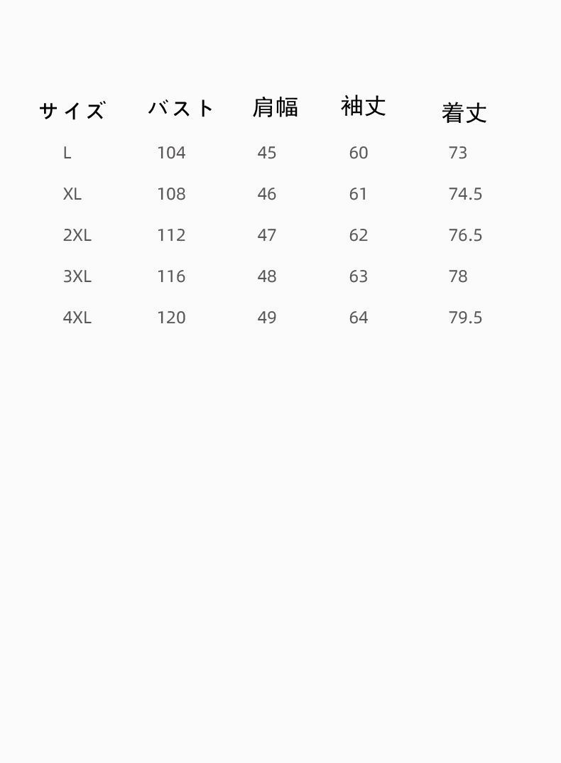 サイズ:L、XL、2XL、3XL、4XL