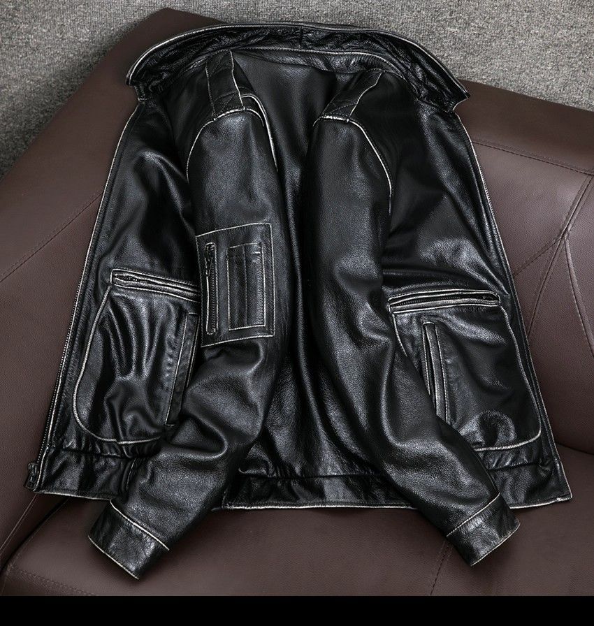 こちらは 頭層牛革 を贅沢に使用したメンズレザージャケットです。アメリカンヴィンテージ風のウォッシュ加工で、クラシックなフライトジャケットの雰囲気を再現。重厚感がありながら柔らかく、着込むほどに味わいが増す本革ならではの経年変化をお楽しみいただけます。