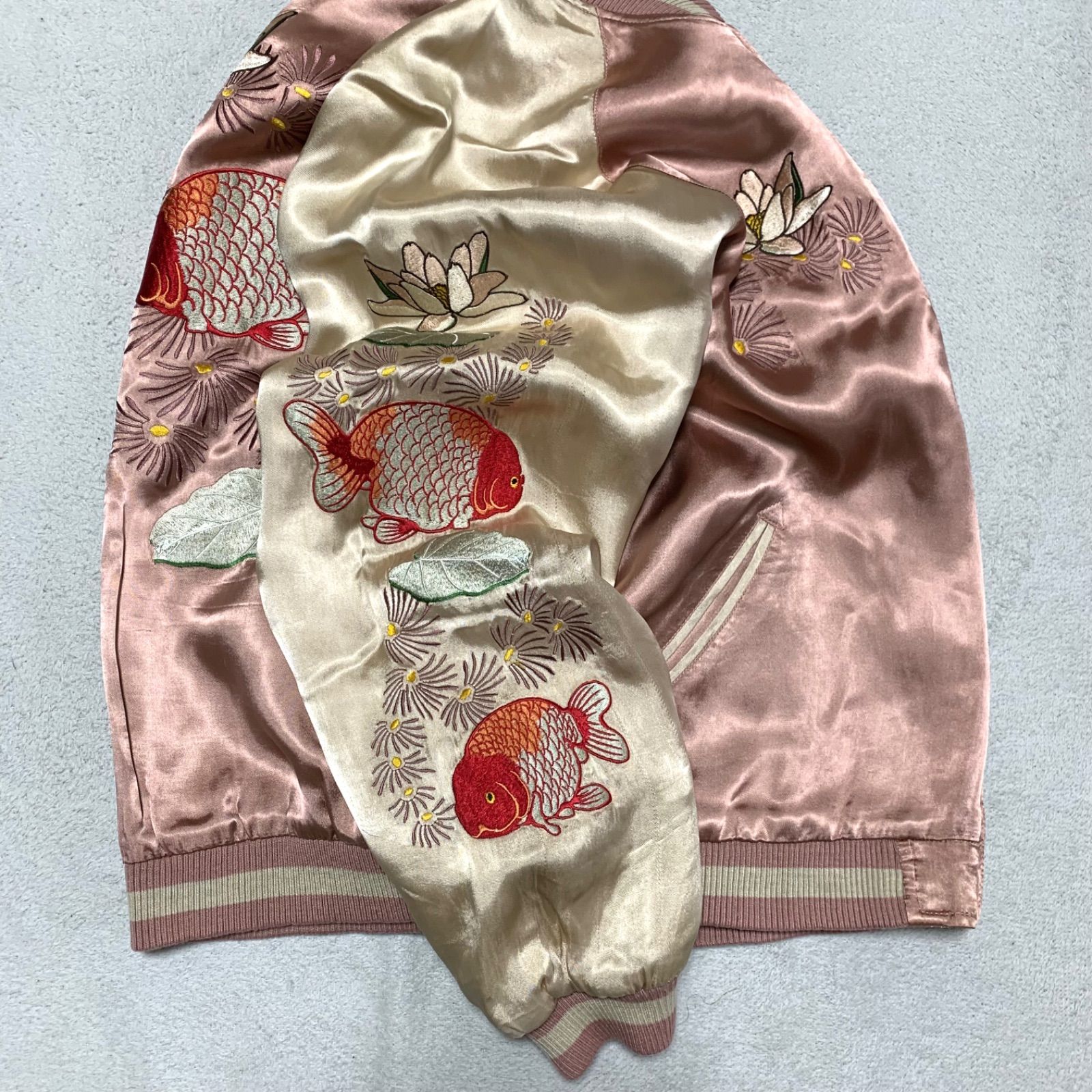 花旅楽団 スカジャン スーベニアジャケット リバーシブル 刺繍 和柄 らんちゅう 金魚 ゴールドフィッシュ Lサイズ ピンク ハナタビガクダン