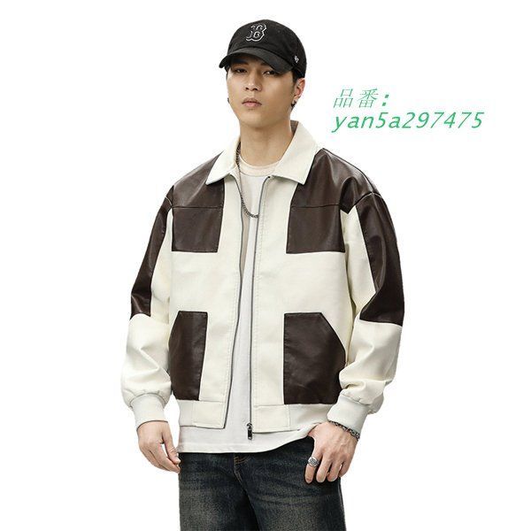 ライダースジャケット メンズ 配色切替え バイクジャケット PUレザージャケット 立ち襟 秋 ライダース カップル スリム 男女ペア 秋服 フェイクレザー yan 5 a 297475