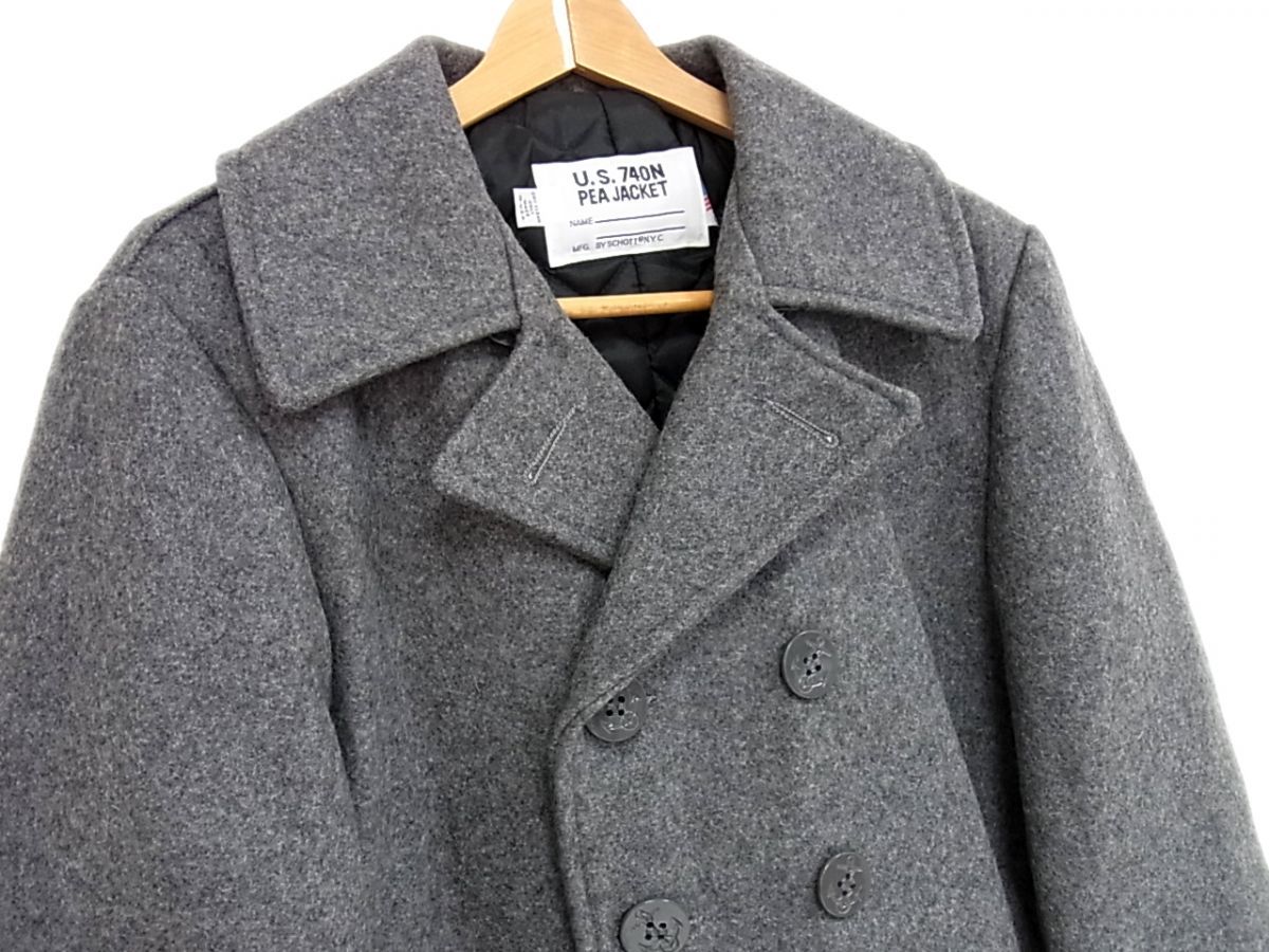 90 s Schott U.S.740 N メルトンウール Pコート ピージャケット グレー ショット 中綿入 メンズ