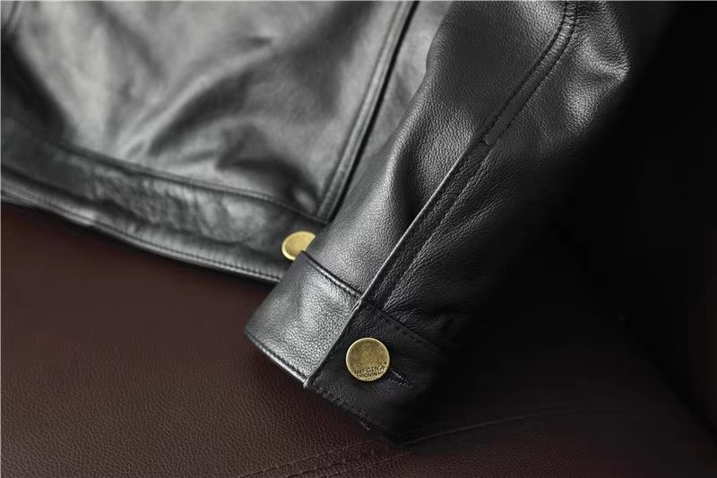 こちらは特価販売中の本革レザージャケットです。高級感のある頭層牛革を贅沢に使用し、タイトめなシルエットと短丈デザインでスタイリッシュに仕上げました。カジュアルからビジネスシーンまで幅広く活躍できる万能アウターです。